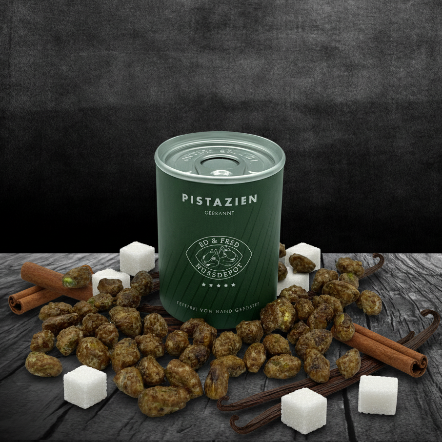 فستق محمّر بالسكر وبوربون فانيلا مع رشة قرفة – سناك حلو ولذيذ.
