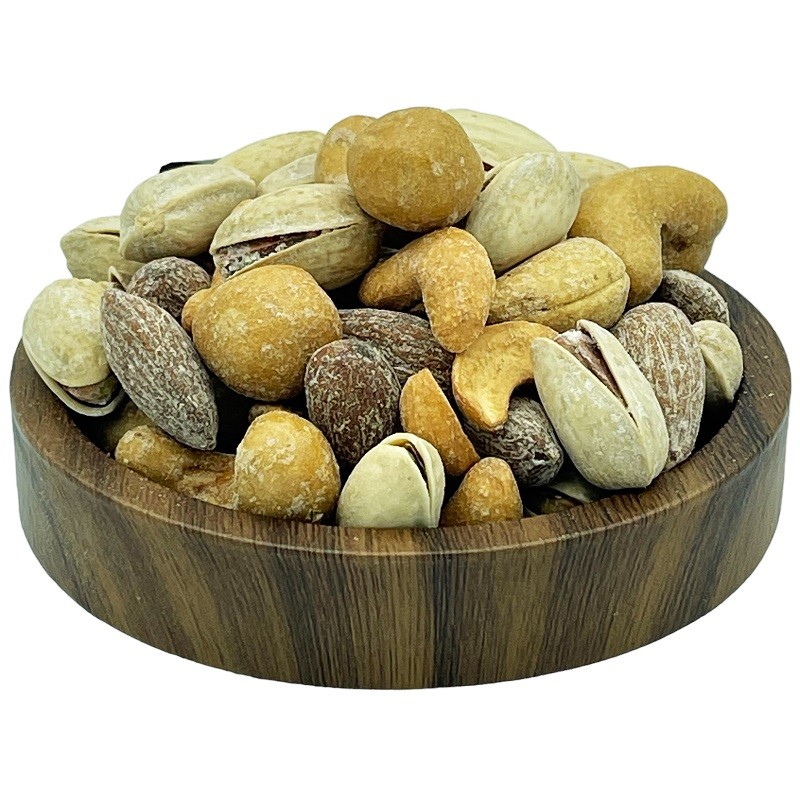 Zutaten: Mandeln, Cashewkerne, Pistazien, Haselnüsse, Salz, Weizenmehl, Zucker, Dextrin, modifizierte Stärke